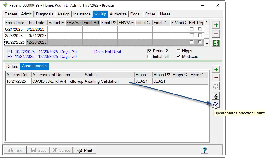 Click on the Update State Correction Count button to alter the correction count for an assessment record: